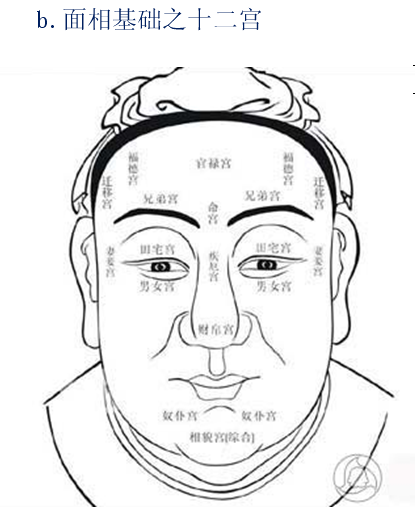 古代相书一般将人的面部分为十二个部位,即十二宫: